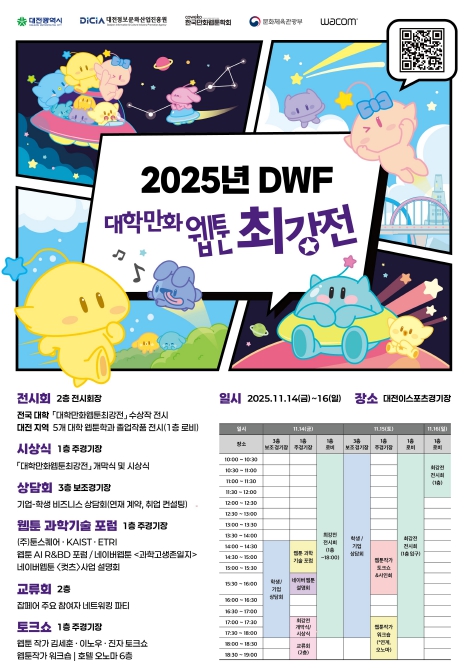 대전시는 이번 행사를 통해 웹툰을 전공하는 전국의 청년 창작자들이 대전에 모여 교류하고, 지역 웹툰산업의 경쟁력과 인재 저변을 확대하는 계기가 될 것으로 기대하고 있다.