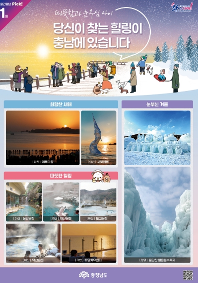 더 많은 겨울 여행 명소와 축제 정보는 충남관광 누리집 또는 월간 충남 1월호 정보무늬(QR코드)를 통해 확인할 수 있다.