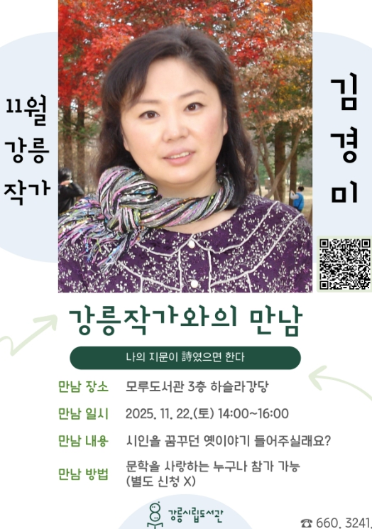 강춘랑 시립도서관장은 “이번 만남을 통해 시민들이 시가 열어주는 세계의 아름다움을 경험하고, 다가오는 연말을 더욱 풍성하게 맞이하길 바란다.”고 전했다.