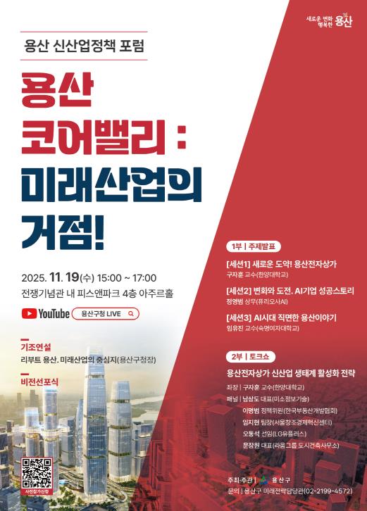 이날 포럼에는 AI·ICT 산업 전문가와 기업인, 취·창업자 등 120여 명이 참석하며, 현장 참석이 어려운 시민을 위해 용산구청 유튜브 채널을 통한 생중계도 진행된다.