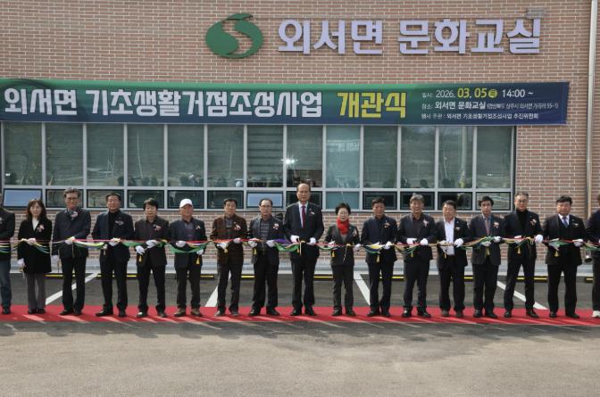[파이낸셜경제=김지훈 기자] 농림축산식품부 공모사업으로 추진한 외서면 기초생활거점조성사업으로 추진한 외서면 문화교실 개관식이 5일(목) 오후 2시에 개최됐다. 이날 행사에는 강영석 상주시장을 비롯하여 지역구 시의원, 마을주민 등 200여 명이 참석해 개관을 축하했다.