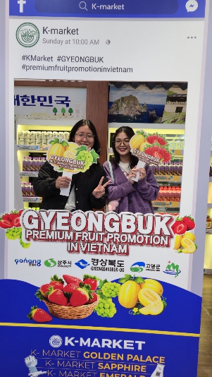 베트남 ‘K-MARKET(케이마켓)’ 골든팰리스점 행사장에서 경북 과일을 맛본 ‘응우옌 티 타오’씨(22세, 하노이)는 “한국 드라마에서 보던 한국 과일의 맛이 늘 궁금했다며, 여기 과일은 현지 과일과 다르게 맛과 향이 모두 달콤해 놀랐다“며 경북 과일에 수줍은 손가락 하트를 보내기도 했다.