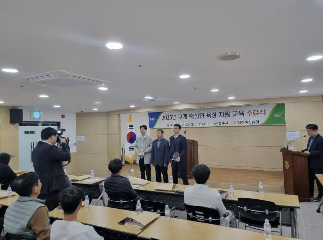 [파이낸셜경제=김지훈 기자] 상주시는 11월 24일 상주축산농협 유통센터 대회의실에서 후계 축산인 육성 교육 수료생을 격려하는‘후계 축산인 육성 교육 수료식’을 성황리에 개최했다.