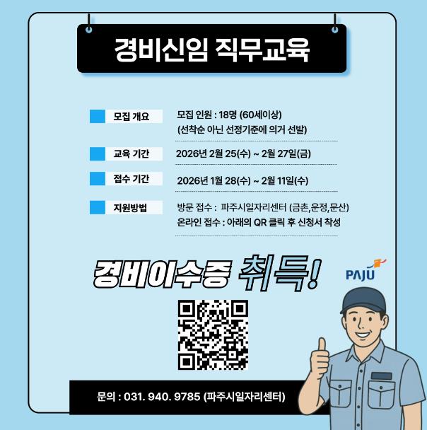| ▲ 파주시, ‘경비 신임 직무교육’ 참여자 모집 |