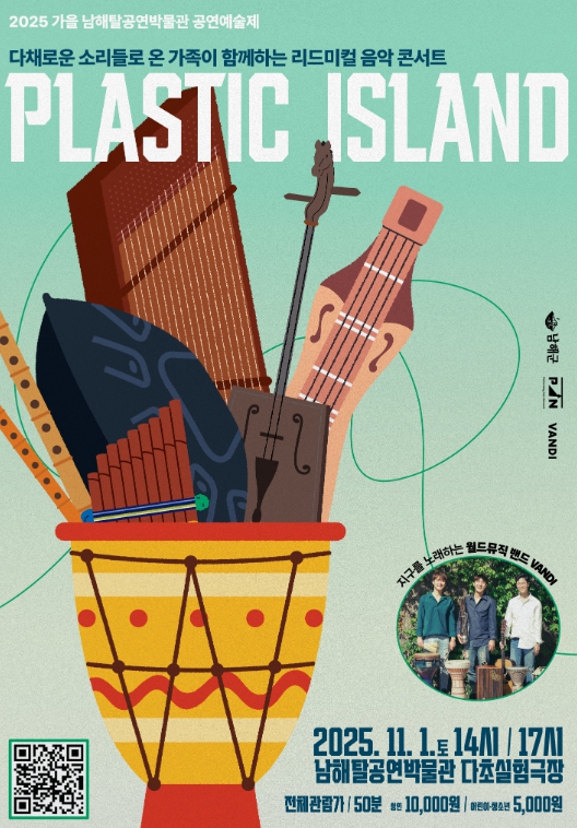 [파이낸셜경제=김예빈 기자] 남해탈공연박물관(이동면 남해대로 2412)은 오는 11월 1일, 월드뮤직 콘서트 ‘플라스틱 아일랜드 Plastic Island’를 개최한다.