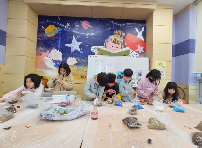 ▲'겨울독서교실' 나만의 ‘움직이는 그림책’ 팝업북 공작소는 초등학교 1~3학년 대상으로 책에서 느낀 감동과 창의적인 아이디어를 종이 공학의 기본 원리인 ‘팝업 기법’에 적용하여 단순히 책을 읽는 것을 넘어, 책 속의 이야기를 ‘살아 움직이는 팝업북’으로 직접 만들어 볼 수 있는 프로그램이다.