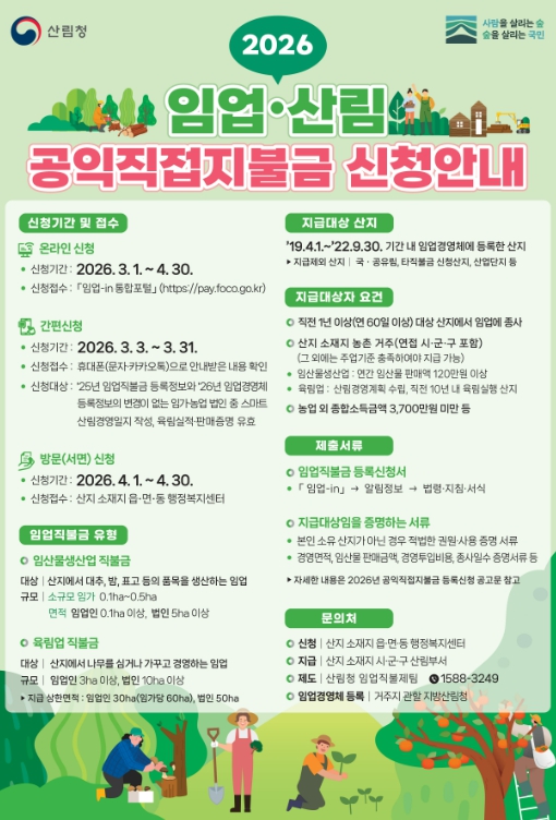 | ▲ 2026년 임업·산림 공익직접직불금 신청 안내 포스터 |