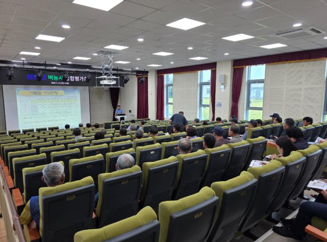 [파이낸셜경제=김예빈 기자] 군산시농업기술센터는 지난 25일 3개 벼농사 시범사업 단지·쌀 채종포단지·선도농업인·농업인상담소장 등 80여 명이 참석한 가운데 ‘2025년 벼농사 종합 평가회’를 농업인평생학습센터 강당에서 개최했다.