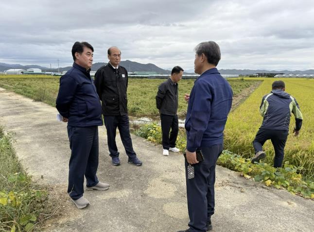 | ▲ 강영석 상주시장, 사벌국면 가루쌀 등 벼 피해 현장 찾아 농가 위로 |