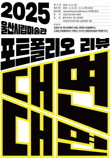 [파이낸셜경제=김예빈 기자] 울산시립미술관이 지역 청년 예술가들의 성장을 지원하기 위해 ‘2025 울산시립미술관 지역신진작가 실적자료집 비평(포트폴리오 리뷰) – 대면_대면 2025(Face_to_Face_to_Face 2025)’ 참여 작가를 공개 모집한다.