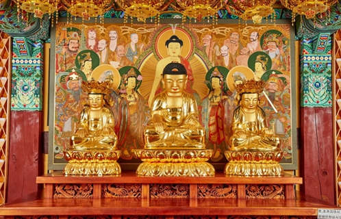 - 삼척 신흥사 대웅전에 주불로 봉안되어 있는 석조석가여래삼존좌상은 본존에 석가여래불, 좌우협시는 보살상으로 구성되어 있다.