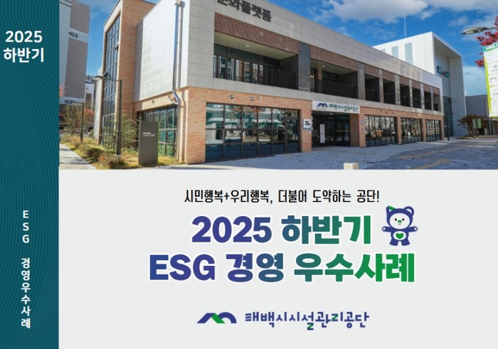 [파이낸셜경제=조성환 기자] 태백시시설관리공단은 2025년 하반기 동안 추진한 ESG 경영 주요 정책과 성과를 종합한 '2025 하반기 ESG경영 우수사례집'을 발간하고, 시민 체감형 ESG 경영 실천 사례를 공유한다고 밝혔다.