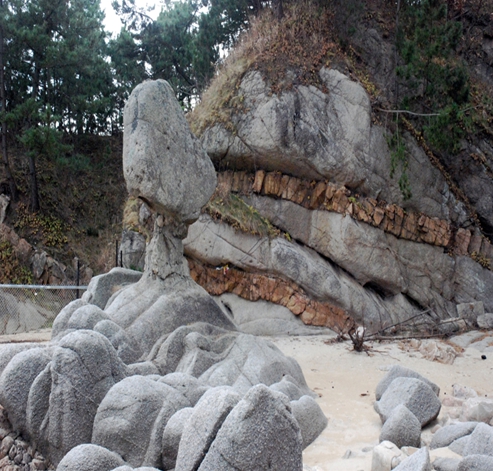 고성 '서낭바위'는 심층풍화와 파도 침식이 오랜 기간 반복되며 형성된 독특한 화강암 풍화미지형으로, 고성 해안을 대표하는 지질 경관으로 꼽힌다.