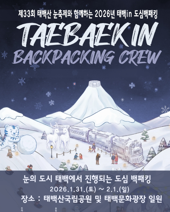 [파이낸셜경제=조성환 기자] 태백시는 오는 1월 31일부터 2월 1일까지 이틀간, 황지연못 내 태백문화광장 일원에서 '2026년 태백 in 도심 백패킹 페스티벌'을 개최한다고 밝혔다.