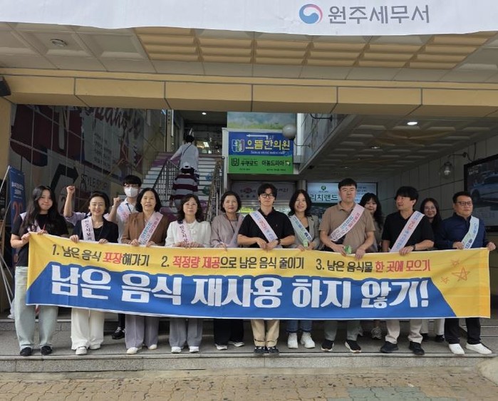 보건소와 한국외식업중앙회 원주시지부 직원들이 참여해 음식 덜어 먹기, 남은 음식 재사용하지 않기, 나트륨·당 줄이기 등 음식문화 개선 실천 분위기를 확산하고, 손 씻기·익혀 먹기·끓여 먹기 등 식중독 예방 수칙도 알렸다.