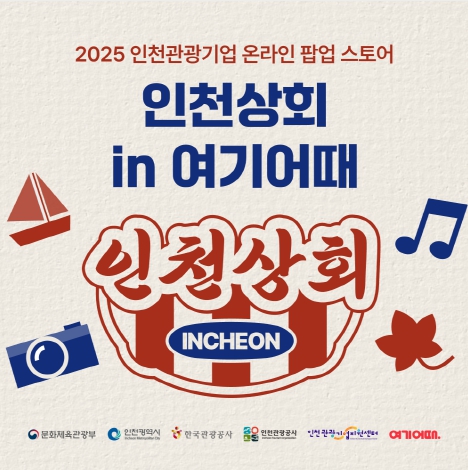[파이낸셜경제=금윤지 기자] 인천광역시와 인천관광공사는 국내 대표 여행·여가 플랫폼 여기어때’와 손잡고‘인천상회 특별전’온라인 팝업스토어를 10월 1일부터 11월 30일까지 2개월간 운영한다.