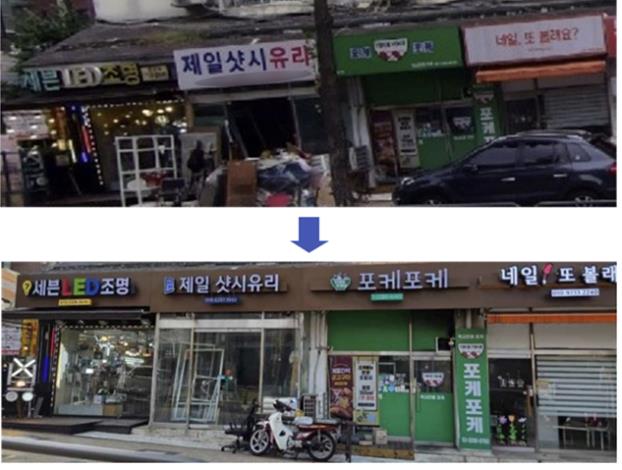 | ▲ 간판개선 전(위)·후(아래) 사진 |
