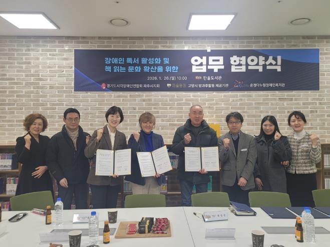 [파이낸셜경제=김기보 기자] 파주시 한울도서관은 지난 26일 장애 특화 서비스 확대를 위해 관내 주요 유관 기관 및 단체와 업무협약식을 개최했다.
