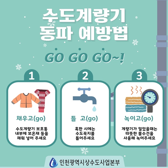 [파이낸셜경제=김기보 기자] 인천광역시 상수도사업본부는 겨울철 한파로 인한 수도시설 누수·동파 등을 예방하고, 시민들에게 24시간 안정적으로 수돗물을 공급하기 위해 내년 3월 15일까지 급수대책을 추진한다고 1일 밝혔다.