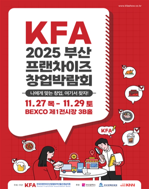 [파이낸셜경제=박영진 기자] 부산시는 27일부터 29일까지 3일간 벡스코 제1전시장에서 '케이에프에이(KFA) 프랜차이즈 창업박람회 2025 부산'이 개최된다고 밝혔다.