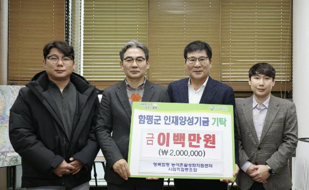 [파이낸셜경제=김예빈 기자] 전남 함평군은 “지난 19일 행복함평 농어촌활성화지원센터 사회적협동조합이 함평군 인재양성기금에 200만원을 기탁했다”고 20일 밝혔다.