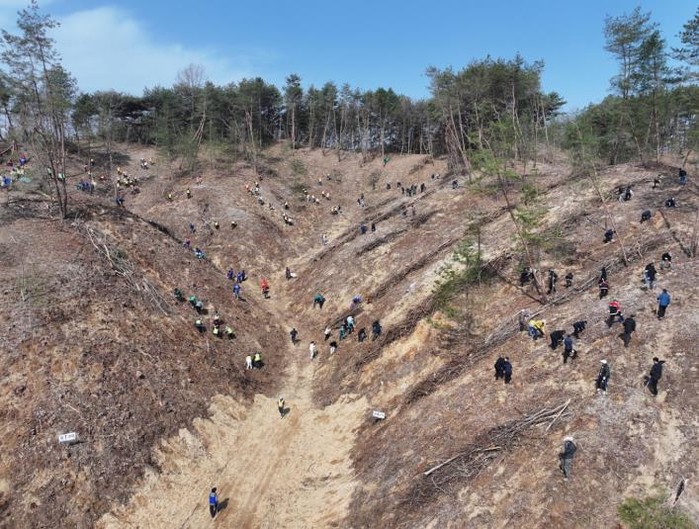 참석자들은 약 3.3ha 면적에 산벚나무 1,100여 본을정성껏 심는다. 산벚나무는 경관이 아름다울 뿐만 아니라 꿀을 생산하는 밀원수이자 목재로도 가치가 높아, 산림의 경제적․공익적 가치를 동시에 높일 것으로 기대된다.