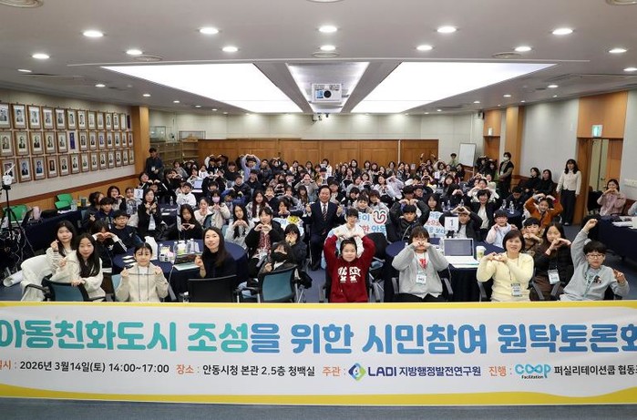 [파이낸셜경제=김지훈 기자] 안동시는 3월 14일 시청 청백실에서 유니세프 아동친화도시 조성을 위한 시민참여 원탁토론회를 성황리에 개최했다고 밝혔다.