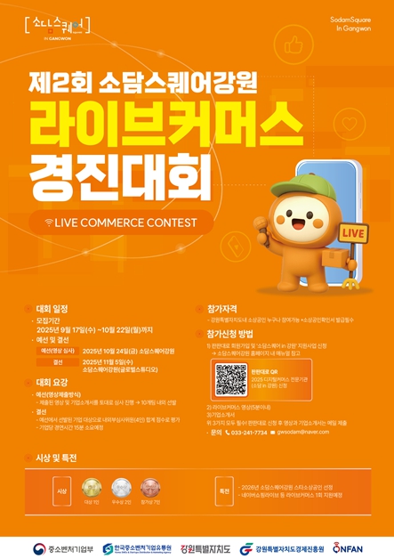 [파이낸셜경제=조성환 기자] 강원특별자치도는 도내 소상공인의 온라인 마케팅 역량 강화를 위해 소상공인이 직접 참여하는 '제2회 라이브커머스 경진대회'를 개최한다고 밝혔다.