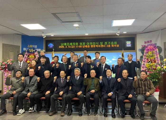 남해읍체육회는 지난 6일 남해읍행정복지센터 2층 회의실에서 제15대·제16대 회장 이·취임식 및 2026년도 정기총회를 개최하고 지역 체육 발전을 위한 새로운 출발을 알렸다.