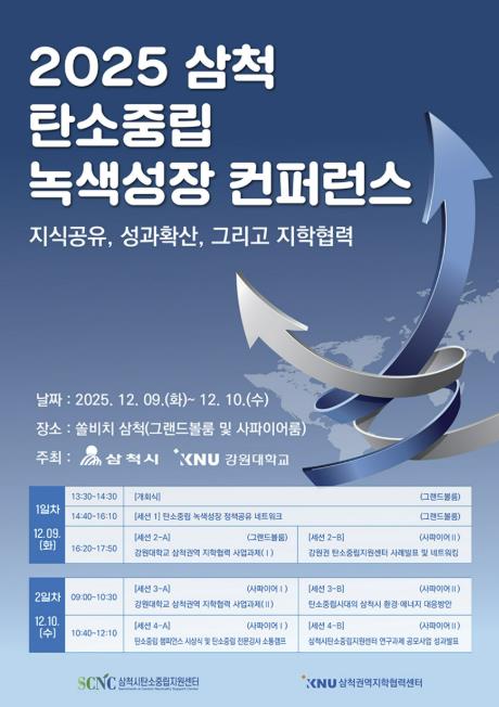 [파이낸셜경제=조성환 기자] 삼척시와 강원대학교가 공동 주최하는 ‘2025 삼척 탄소중립 녹색성장 컨퍼런스’가 오는 12월 9일부터 10일까지 이틀간 쏠비치 삼척에서 개최된다.