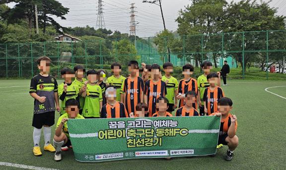 | ▲ 동해시종합사회복지관,‘꿈을 그리는 예체능’ 강릉FC와 함께한 아동 친선 풋살 경기 성료 |