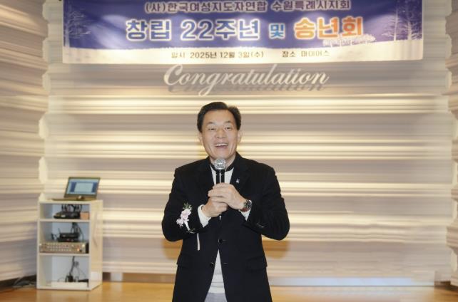 [파이낸셜경제=김기보 기자] 이재준 수원시장이 3일 권선구에서 열린 한국여성지도자연합 수원시지회 송년 행사에 참석해 “여성의 인권을 넘어 지역사회에 다양한 활동과 지원을 해주신 여러분께 감사드린다”고 말했다.