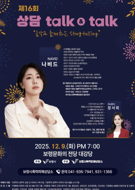 [파이낸셜경제=김영란 기자] 보령시는 지난 9일 보령문화의전당 대강당에서 음악과 함께하는 스토리텔링 ‘제16회 상담 talk&talk’ 행사를 개최했다고 밝혔다.