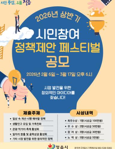 | ▲ “정읍 발전 위한 아이디어 찾습니다”… 시민 제안 공모전 개최 |