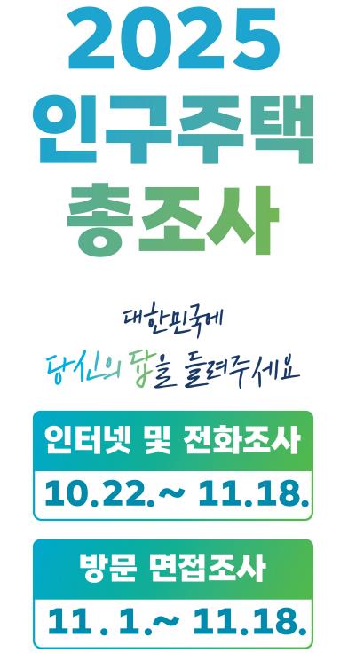 2025 인구주택총조사는 11월 18일까지 인터넷과 전화를 통한 비대면 방식으로 참여할 수 있으며, 10월 말까지 응답하지 않은 가구에 대해서는 11월 1일부터 18일까지 통계조사원이 방문해 태블릿PC를 활용한 대면조사를 실시한다.