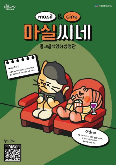 ‘마실씨네’는 소상공인 가게에서 영화를 상영하며 다양한 음식을 함께 즐길 수 있도록 기획된 프로그램이다. 이를 통해 시민과 관광객에게 새로운 문화 체험을 제공하고, 지역 상권 활성화와 속초의 음식문화 확산에도 앞장선다는 계획이다.
