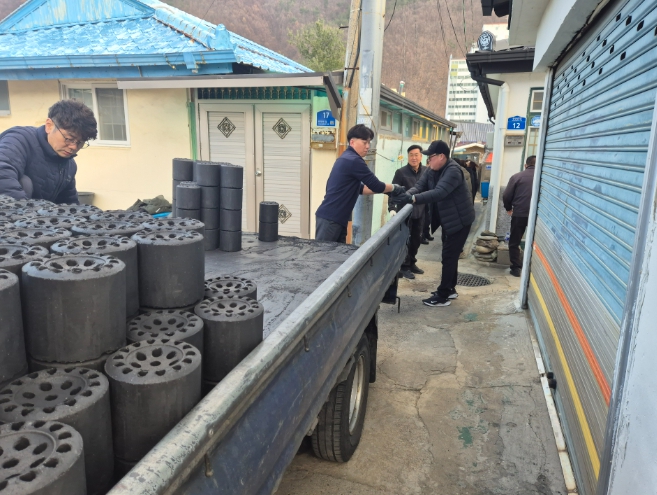 대원들은 추운 날씨 속에서도 연탄을 직접 나르며 이웃과 온정을 나누는 뜻깊은 시간을 가졌다.