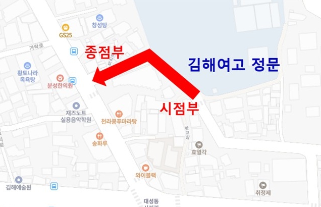 | ▲ 김해여고 앞 시간제 일방통행 운영 위치도 |