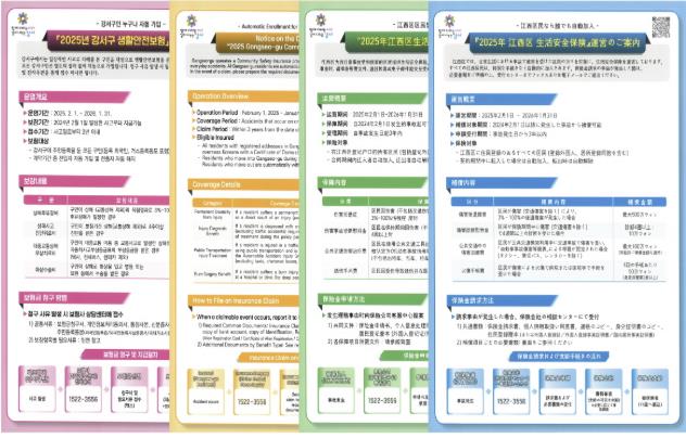 [파이낸셜경제=김예빈 기자] 서울 강서구는 ‘생활안전보험’ 안내문을 한국어, 영어, 중국어, 일본어 4개 국어로 제작했다고 밝혔다.