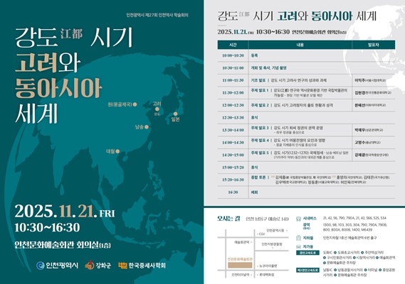 [파이낸셜경제=김기보 기자] 인천광역시는 제27회 인천역사 학술회의 ‘강도 시기 고려와 동아시아 세계’를 오는 11월 21일 인천문화예술회관에서 개최한다고 밝혔다.