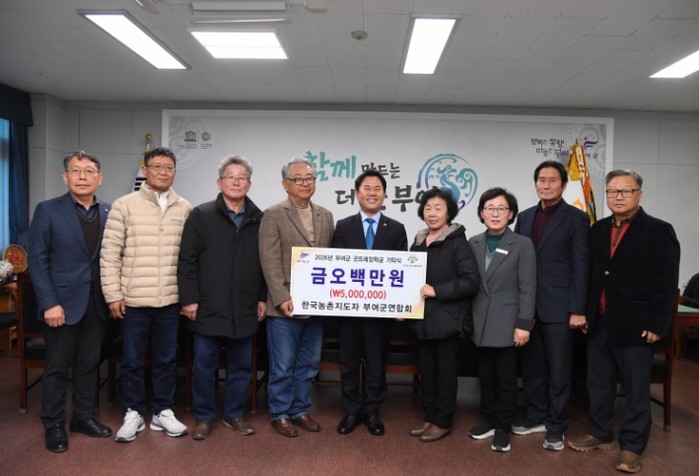 [파이낸셜경제=김영란 기자] 부여군농촌지도자회(회장 임병우)는 부여군청을 방문하여 인재 육성을 위한 장학금 5백만 원을 (재)부여군굿뜨래장학회에 기탁했다고 13일 밝혔다.