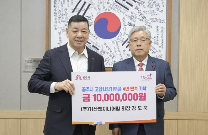 [파이낸셜경제=김영란 기자] 공주시는 지난 9일 ㈜기산엔지니어링 강도묵 회장이 4년 연속 고향사랑기부제 고액 기부를 이어가며 남다른 고향사랑의 마음을 전하고 있다고 밝혔다.