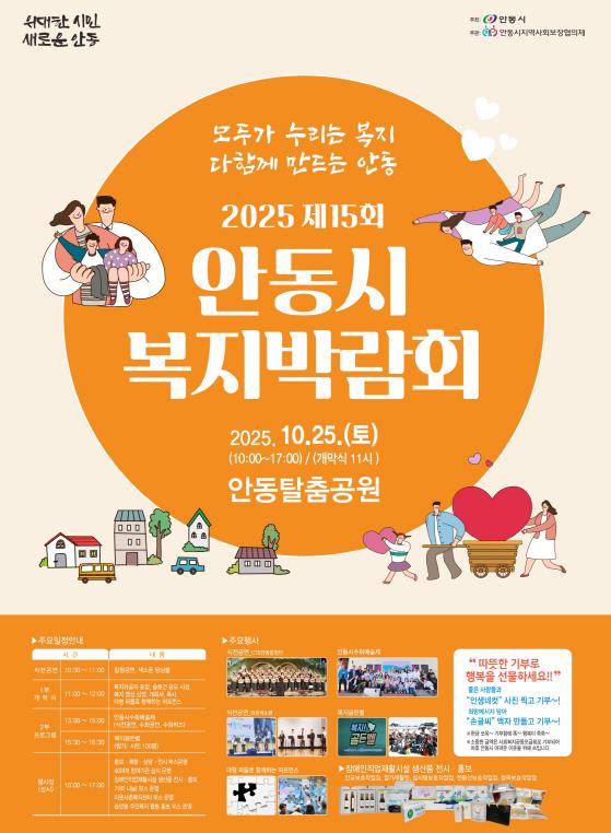[파이낸셜경제=김지훈 기자] 안동시는 10월 25일 안동탈춤공원에서 ‘2025년 제15회 안동시 복지박람회’를 개최한다.