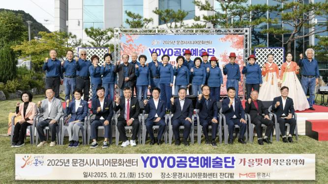 [파이낸셜경제=김지훈 기자] 문경시 시니어문화센터는 지난 21일 300여 명의 관람객이 찾은 가운데 시니어문화센터 앞 광장에서 23명의 어르신들이 취미 활동으로 갈고닦은 실력을 뽐내는 ‘2025년 문경시 시니어문화센터 YOYO공연예술단 가을맞이 작은 음악회’를 열었다.
