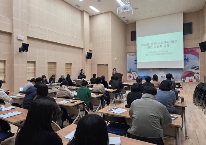 [파이낸셜경제=김예빈 기자] 고창군이 지난 9일 고창군보훈회관 1층 다목적실에서 읍·면 사회복지 업무 담당자 30여 명을 대상으로 2026년 사회복지사업 추진방향 교육과 공유의 시간을 가졌다.