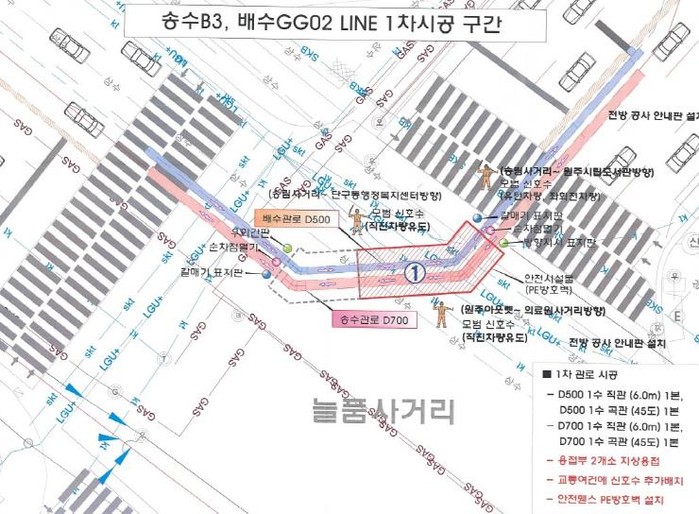 [파이낸셜경제=조성환 기자] 원주시상하수도사업소는 태장배수지 설치사업의 일환으로 진행되는 늘품사거리 교차로 구간 송배수관로 설치공사를 야간에 실시한다.