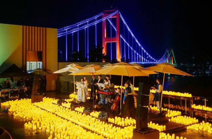 ‘남해대교 앞, 빛과 선율의 만남’을 주제로 열린 이번 공연은 늦가을 빗속에서도 많은 군민과 관광객이 함께했으며, 남해 바다를 배경으로 촛불의 따스한 분위기와 감성적인 음악이 어우러지는 낭만적인 무대가 펼쳐졌다.