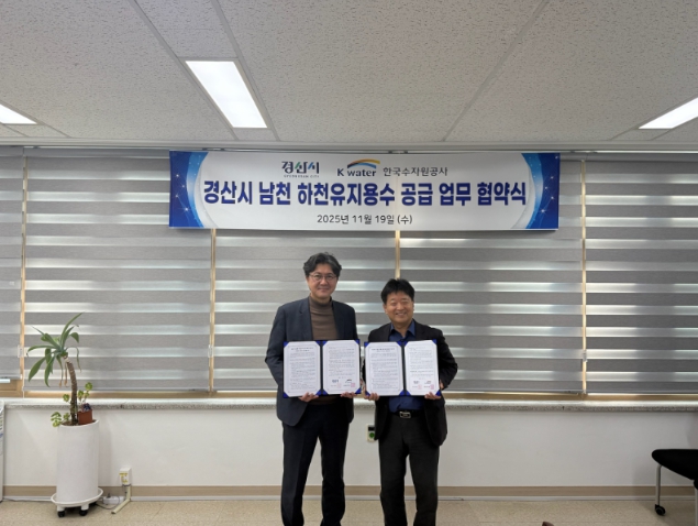 [파이낸셜경제=김지훈 기자] 경산시는 19일 맑은 물 사업본부에서 한국수자원공사 운문권 지사와‘남천 하천유지용수(환경 개선 용수) 공급’을 위한 업무협약을 체결했다고 밝혔다.