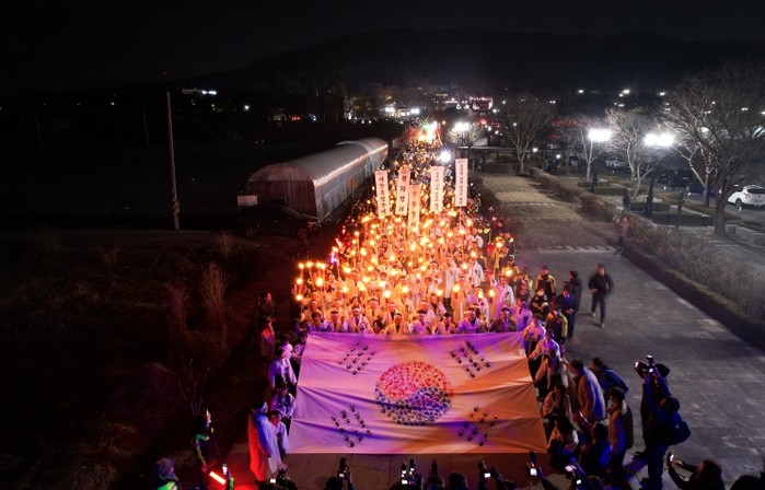 | ▲ 1. 지난해 열린 106주년 아우내봉화제에서 시민들이 횃불행진을 하고 있다. |