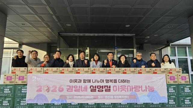 이재식 의장은 “어려운 시기에도 이웃을 위해 따뜻한 손길을 내어주신 권선1동 주민분들께 깊은 감사를 드린다”며 “이러한 정성이 모여 우리 이웃들이 조금 더 따뜻하고 풍성한 설 명절을 보낼 수 있기를 바란다”라고 전했다.